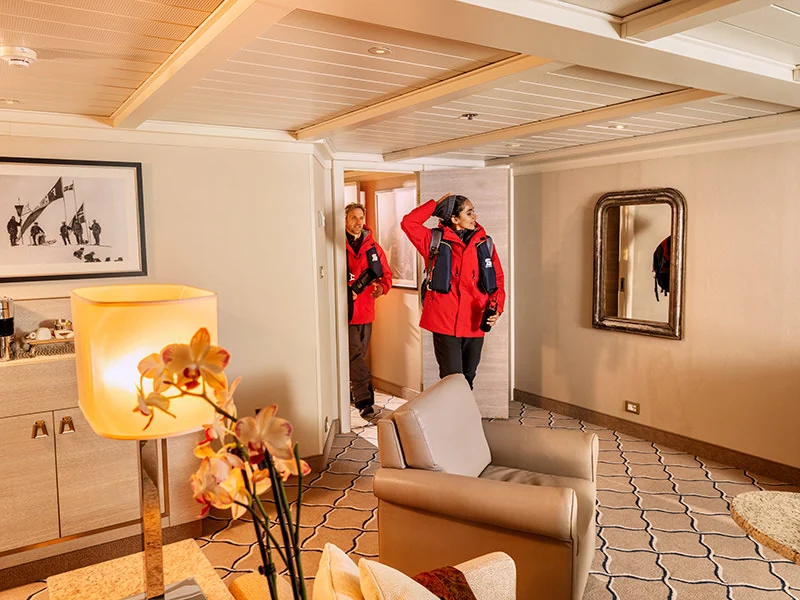 People sometimes still view expedition voyages as a rugged and uncomfortable experience. Although you can still get as down and dirty when you go ashore as the Expedition pioneers did back in the day, when you return to the ship, you are greeted by a staff who's there to anticipate all your needs, and you get to retreat to your suite with the similar comforts you would have at home.
