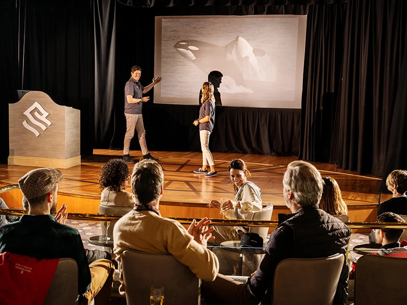 We often say Expeditions are a voyage of discovery because most people grow a sense of appreciation for everything they get to experience in these voyages, things that many don't get to experience their entire lives. At the end of each day, you and your fellow travelers will gather at the theater to talk about the incredible sights and activities you've done that day and plan for the next day of adventures. And, the Expedition team is always there to teach you something new and give you insights on everything your eyes just witnessed.